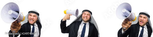 © Elnur, Fototapeta premium Arab businessman with megaphone isolated on white