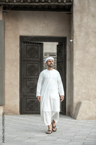 © katiekk2, Naklejka premium arab man in traditional clothing coming out of a door