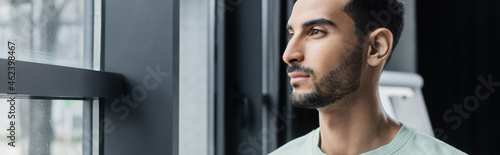 © LIGHTFIELD STUDIOS, Obraz premium Arabian businessman looking at window in office, banner