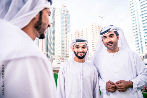 © oneinchpunch, Obraz premium Arabian businessmen meeting outdoors