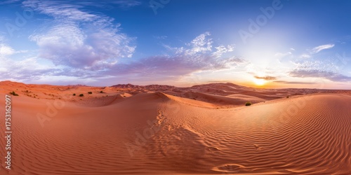 © chelmicky, Fototapeta premium Arabian desert landscape with sunset over sand dunes