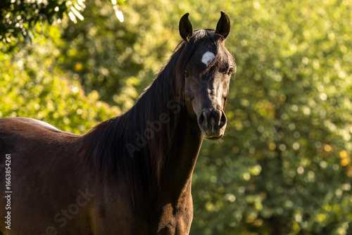 © Annabell Gsödl, Fototapeta premium Arabian gelding standing outdoors in summer nature