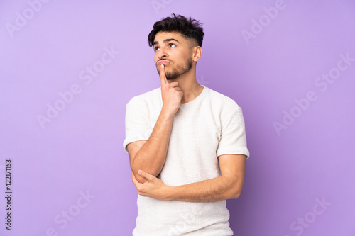 Fototapeta premium Arabian handsome man over isolated background having doubts while looking up
