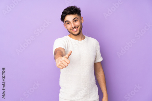 Fototapeta premium Arabian handsome man over isolated background with thumbs up because...