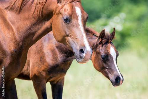 © Alexia Bragina, Fototapeta premium Arabian mare and foal closeup