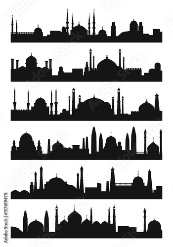 Obraz premium Arabic architecture silhouette of mosque roof. Vector city isolate on white...