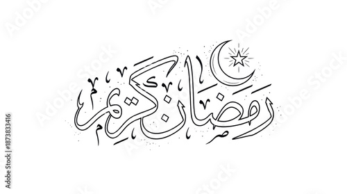 © MAS, Fototapeta premium Arabic calligraphy text design in grayscale shades, possibly related to ramadan, centered on a white studio shot on white and transparent