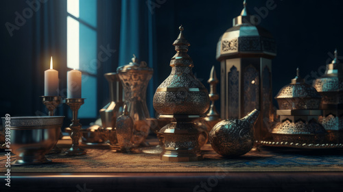 © ArtStage, Fototapeta premium Arabic lantern of ramadan celebration background. AI generated