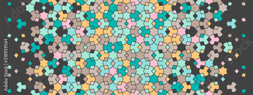© alstanova@gmail.com, Fototapeta premium Arabic pattern, islamic vector border. Geometric halftone texture, arabic pattern with color tile disintegration.