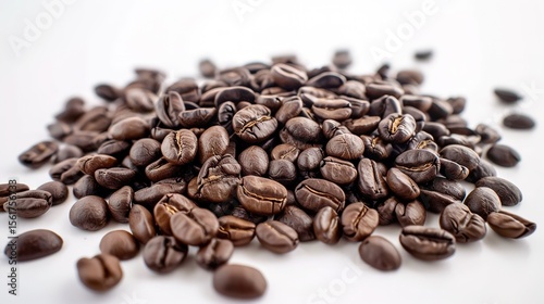 © 杰 徐, Naklejka premium Arabica Elegance: Artistic White Background Coffee Bean Images – Glossy Roast Gradients, Textured Bean Creases, Aromatic Steam Hints, and Precision-Arranged Coffee Bean Patterns in High-Contrast Photo