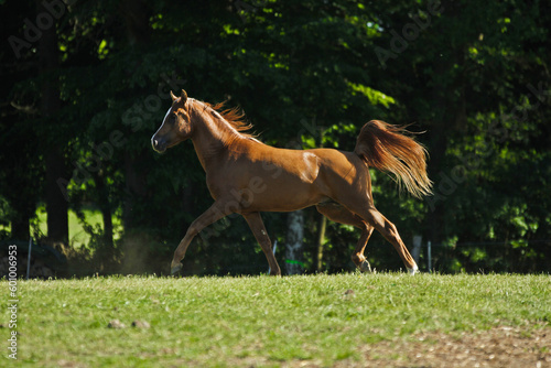 © AZ Woodring, Fototapeta premium Arabischer Hengst auf der Weide