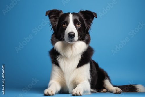 Fototapeta premium arafed dog sitting on a blue surface with a blue background