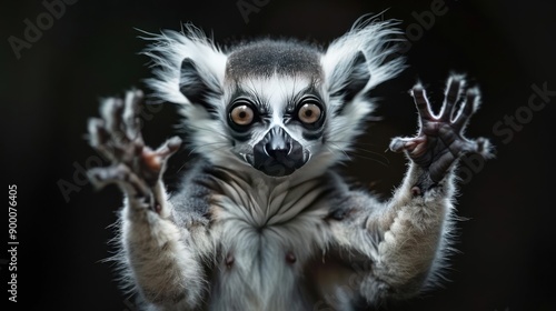 © GradPlanet, Fototapeta premium arafed lemur with a black and white face and hands