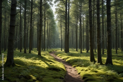© haiqiang, Obraz premium arafed path in a forest with moss and trees