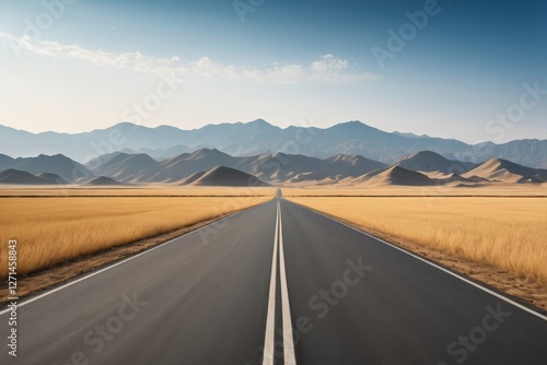 © haiqiang, Fototapeta premium arafed road in the middle of a desert with mountains in the background