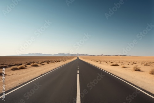 © haiqiang, Fototapeta premium arafed road in the middle of a desert with mountains in the distance