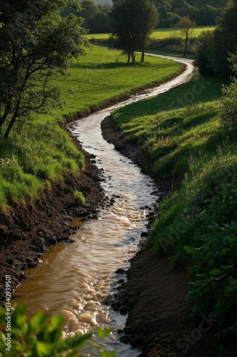 © haiqiang, Obraz premium arafed stream of water running through a lush green field