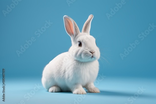 © haiqiang, Fototapeta premium arafed white rabbit sitting on a blue surface with a blue background