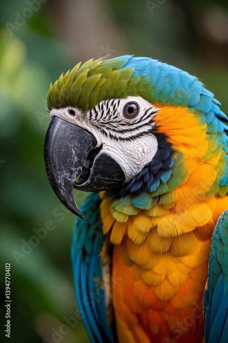 Obraz premium araffe parrot with a blue and yellow feathers and a green head
