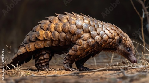 © GradPlanet, Fototapeta premium araffe walking in the dirt with its tail curled up