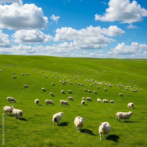 © Wawan, Obraz premium Araffes In A Large Field Of Grass With A Blue Sky