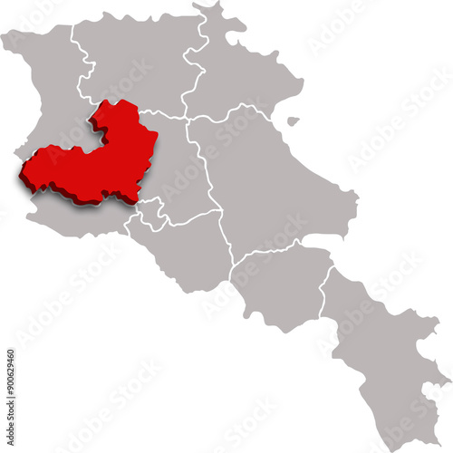 © WALDIR, Fototapeta premium ARAGATSOTN map REGION of ARMENIA 3d isometric map