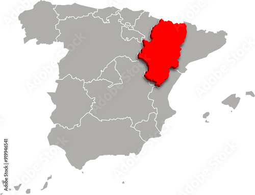 © WALDIR, Naklejka premium aragon map ADMINISTRATIVE DIVISIONS of SPAIN 3d isometric map
