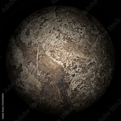 © plus69, Naklejka premium Arbitrary lifeless planet on a black background