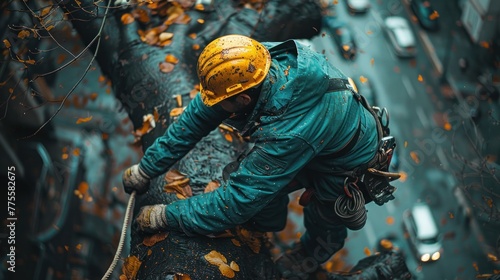 Obraz premium Arborist men working to trim trees.