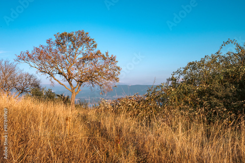 © Pyc Assaut, Fototapeta premium arbre solitaire dans la prairie sèche, mont Mourex