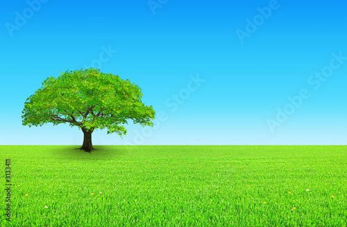 © Beboy, Obraz premium arbre sur prairie et ciel bleu