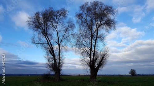 Fototapeta premium Arbres jumeaux en hiver Twin trees in winter