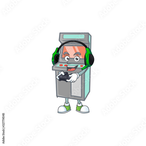 Fototapeta premium Arcade game machine cartoon picture play a game with headphone and controller