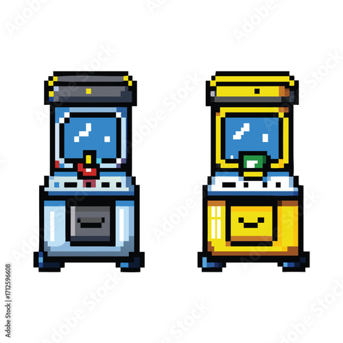 Fototapeta premium Arcade Machines 8-Bit Pixel Art Icon Set. 2 Retro Gaming Cabinet Sprites