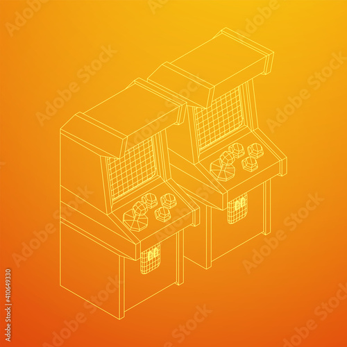 © newb1, Fototapeta premium Arcade retro game machine. Wireframe low poly mesh vector illustration.