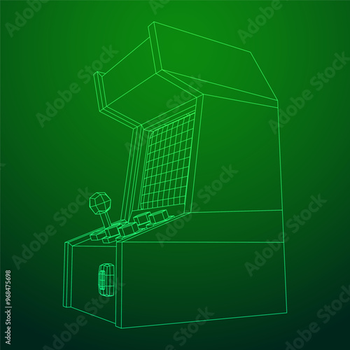 © newb1, Fototapeta premium Arcade retro game machine. Wireframe low poly mesh vector illustration.