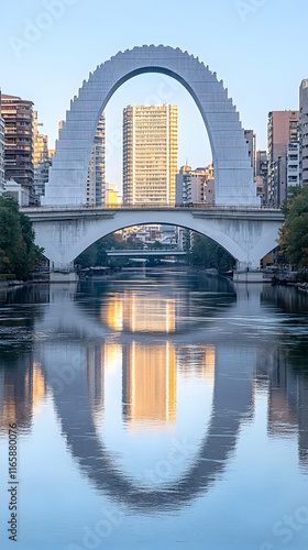Naklejka premium Arch Bridge Cityscape Reflection Photo