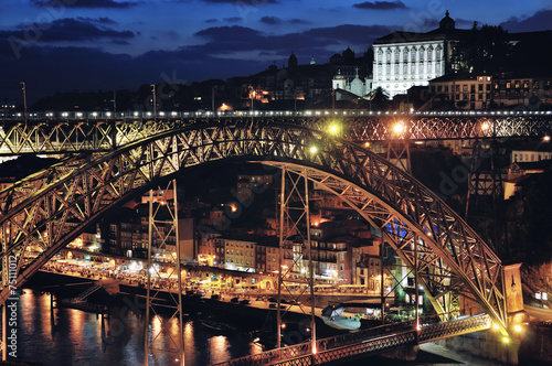 © Madrugada Verde, Naklejka premium Arch metallic bridge over Douro River in Porto at night