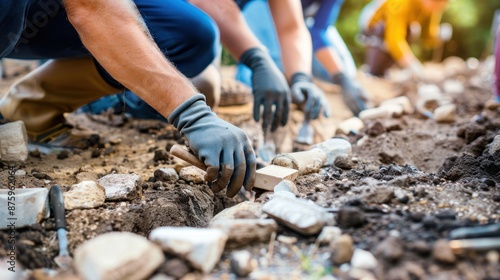 Fototapeta premium Archaeological Dig: Hands Uncovering History
