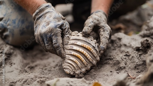 © Umianifaturosidah, Fototapeta premium Archaeologist Discovering Ancient Artifact
