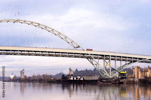 Obraz premium Arched Fremont bridge over the river Willamette Portland Oregon