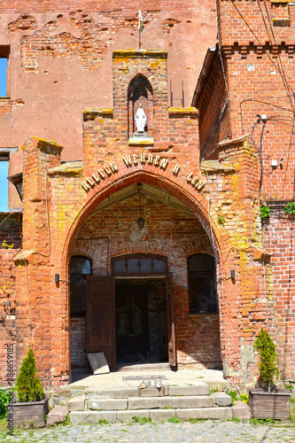 Naklejka premium Arched portal in Shaaken Castle, XIII century. Kalinnigrad region. German...