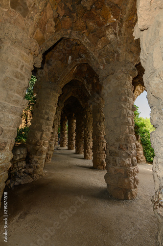 Fototapeta premium Arches at the Parque Güell in Barcelona Spain