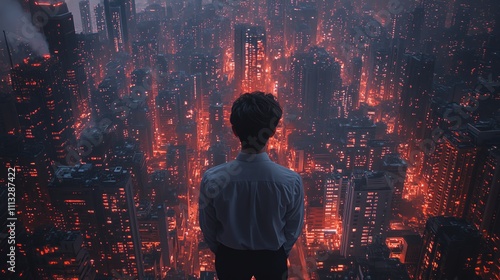 © Phoenix AI Photo, Fototapeta premium Architect designing a city using holograms focus on, city in light, realistic, Overlay, future city planning backdrop