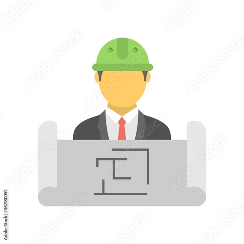 © Elmin, Obraz premium Architect icon illustration. Construction engineer symbol. Flat design style.