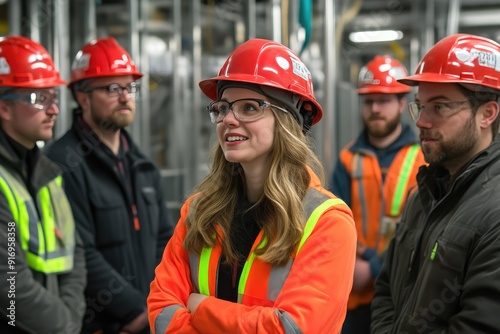 Obraz premium Architects and Builders Discussing Project Plans On-Site