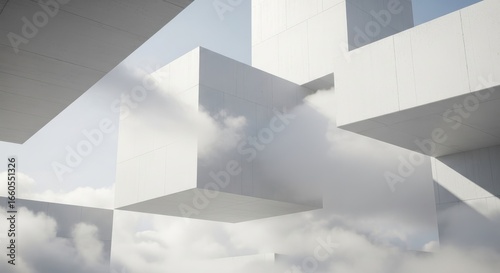 Obraz premium Architectural Abstraction: Clean, minimalist forms interact with airy clouds,...