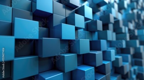 © Vlad, Obraz premium Architectural Abstraction: Three-Dimensional Block Design in Blue