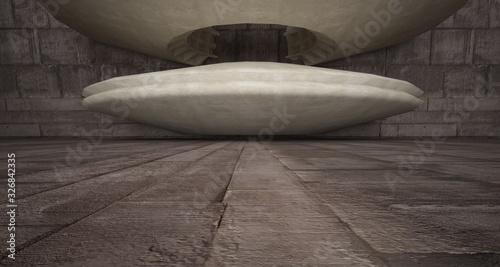 © SERGEYMANSUROV, Naklejka premium Architectural background. Abstract concrete interior with smooth discs. 3D illustration and rendering.