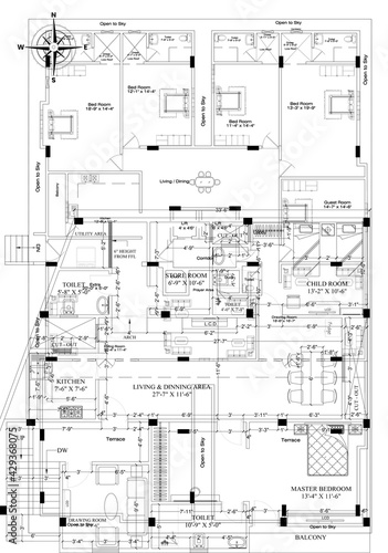 © Chillapuram, Obraz premium Architectural background blueprint